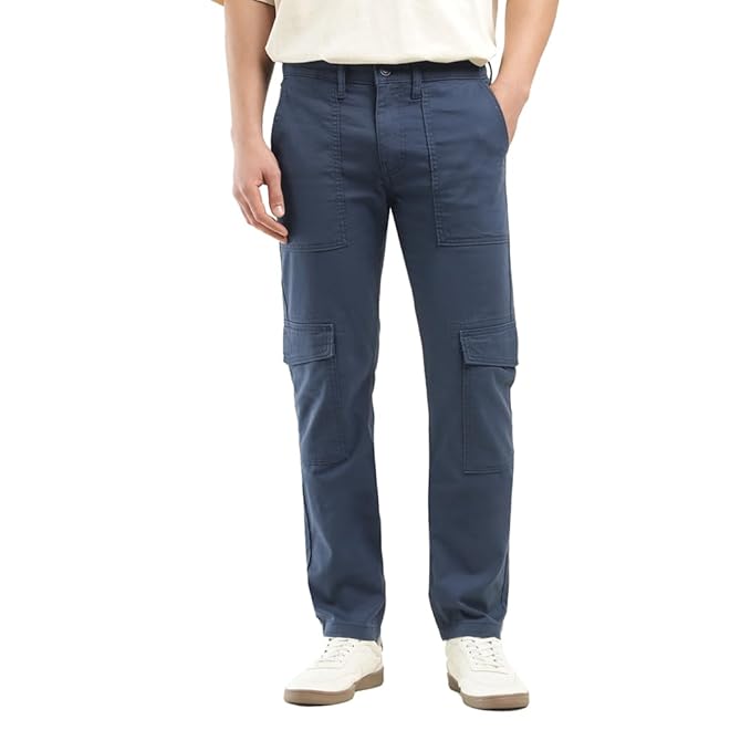 Rise Navy Trousers There’s nothing like a great pair of trousers. These navy levi’s cargos are designed to be versatile enough to go with anything from a t-shirt to a sporty jacket. Made from cotton that’s super comfortable, these slim pants get the job done. 1. Flattering slim fit 2. Features a solid pattern